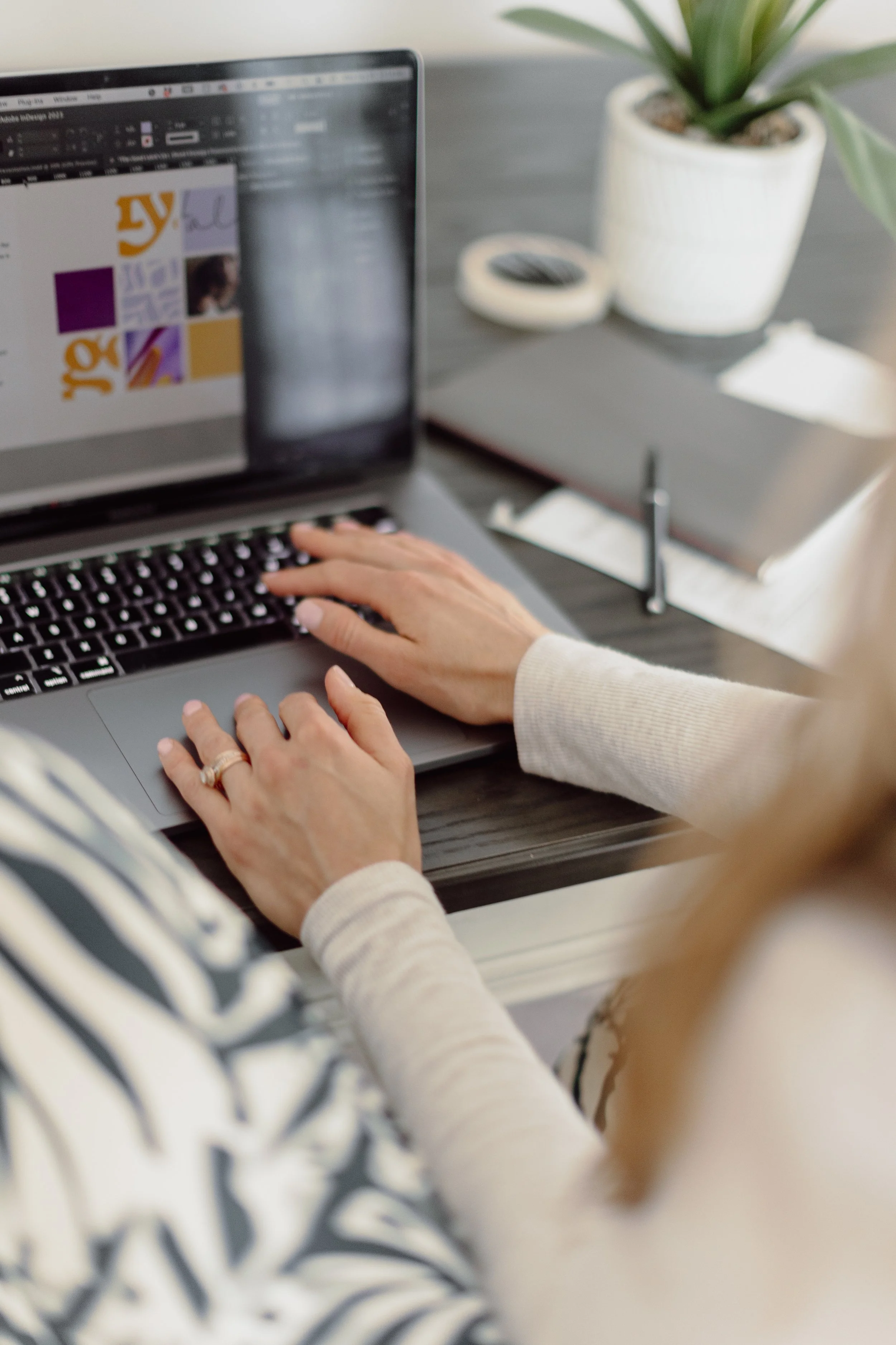 *Design services and grounded guidance that help you apply your brand beautifully without spiraling into Canva rabbit holes (or bothering your cousin’s friend who once “did graphics”).