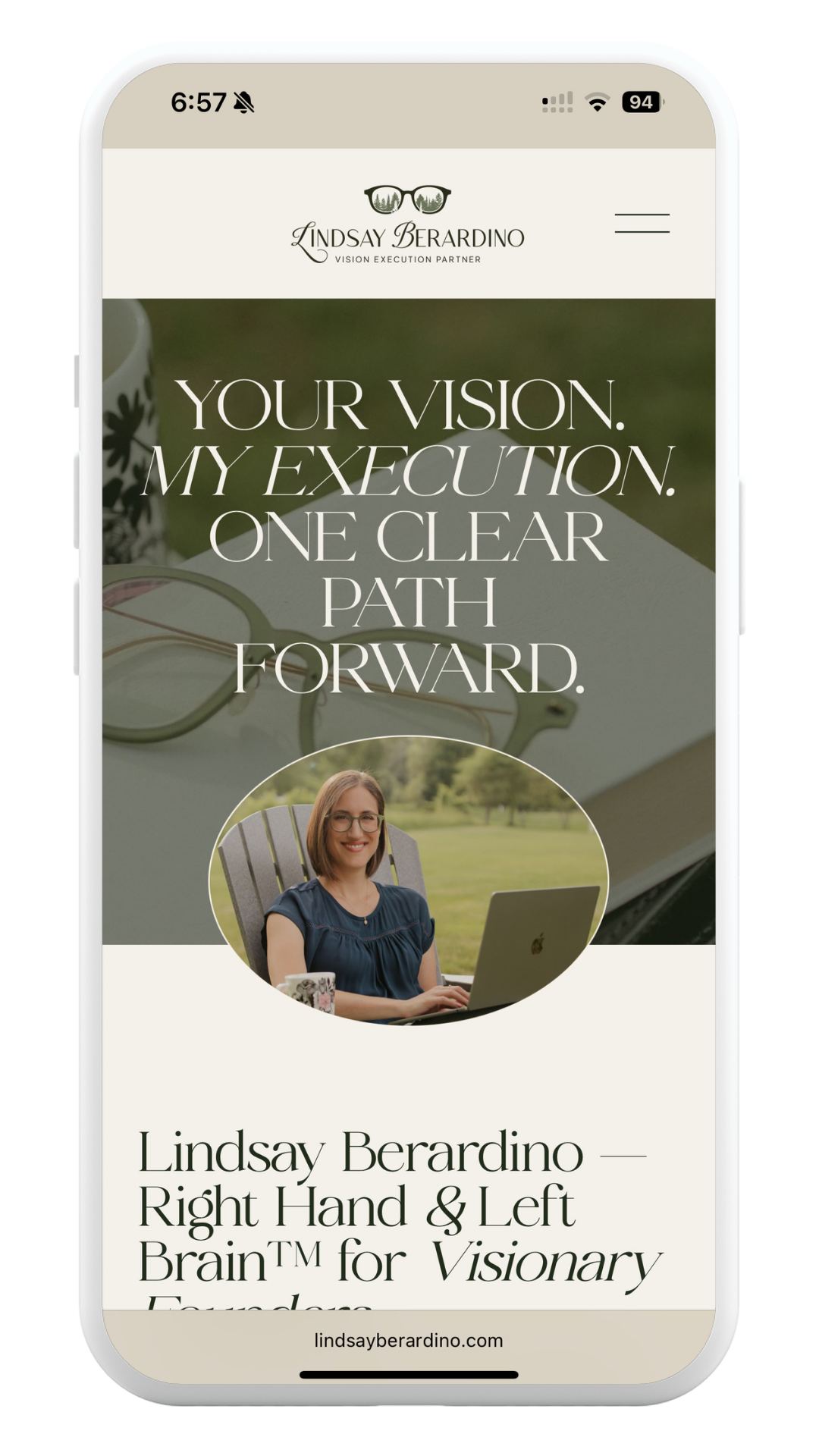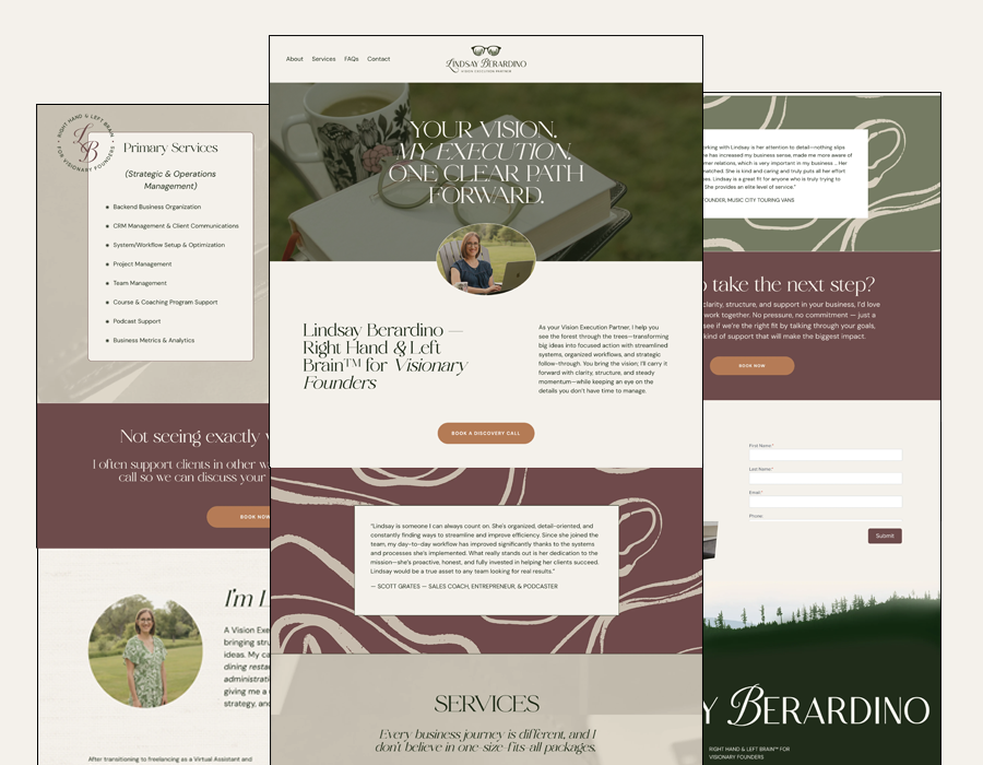 Our goal was to reposition Lindsay as what she truly is: a Vision Execution Partner—someone who helps big-picture thinkers stay focused on where they’re going while she handles the details that make forward momentum possible.